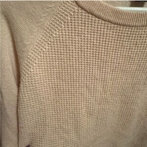 Soft and casual theory light pink crew neck sweater with a waffle like design. 100% cashmere. The color is a light / pale pink. May appear different on screens women’s medium. Has some wear and pilling.
