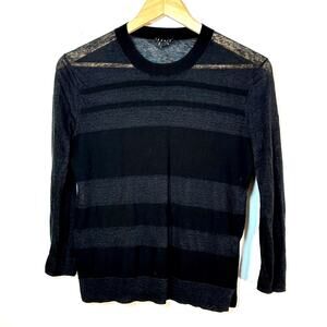Theory linen blend semi sheer striped top woman’s S GUC neutral capsule