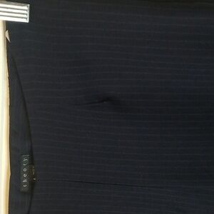 Theory navy blue pin stripe pin tuck pants size 6 side zipper 100% Wool EUC