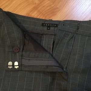 Theory gray/grey pinstripe pencil skirt with back flap pockets and belt loops in size 00.
