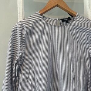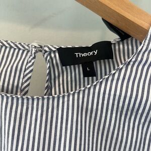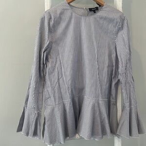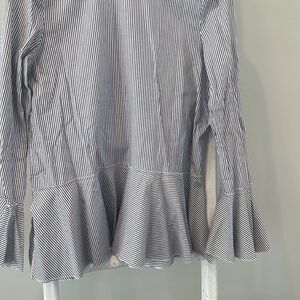 Theory pinstripe Lexandra peplum ruffle long sleeve tunic large