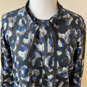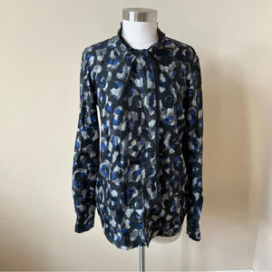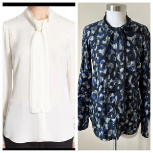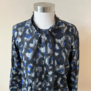Theory raashida patterned 100% silk tie neck blouse 17951