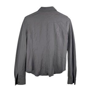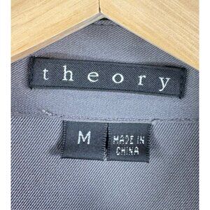 This elegant Theory blouse combines a sophisticated grey color with a luxurious silk blend, making it perfect for professional office wear.