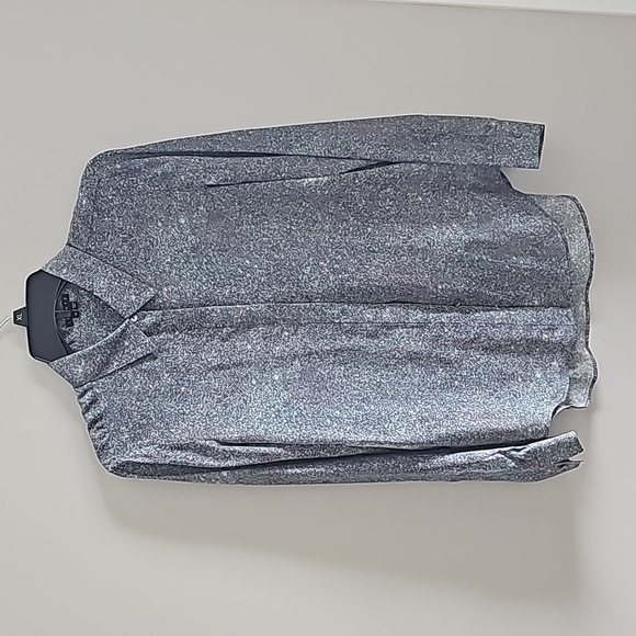Theory silk button down, size medium, blue green speckled eggshell type color