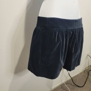 theory cotton blend dark blue velvet mini skirt with pockets. missing the hook closure still zips fine