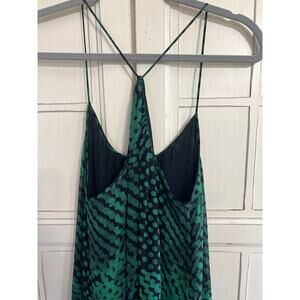 Theory size small green & black 100% silk mini dress in excellent condition. Measures 17” from armpit to armpit. 20” across the waist and it is 39” long.