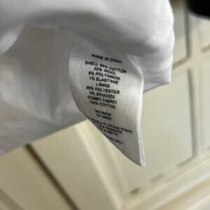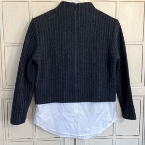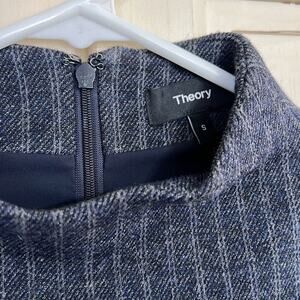 Theory size small navy blue with pin stripes sweater top with what looks like a blouse underneath but is all one piece. 32% wool. Zips at the neck in the back. Measures 18” from armpit to armpit and 25” long.