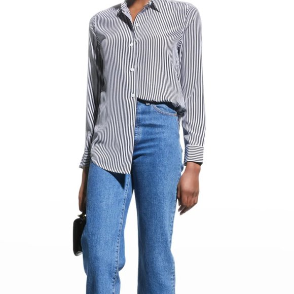 Theory stripped Silk Blouse Button-down Top, Petite XS
