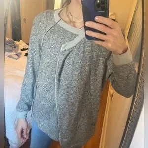grey sweater jacket. Zipper and button enclosure but can be worn as a cardigan. Fits TTS