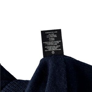 The Theory Navy Blue V-neck long sleeve sweater is a luxurious and stylish addition to any woman's wardrobe. Made from a blend of silk and cashmere, this sweater is soft to the touch and provides both warmth and elegance. The V-neck design adds a touch of sophistication with fine ribbing on sleeve hem and bottom hem. While the tag has size "P", I would consider it a small petite fit