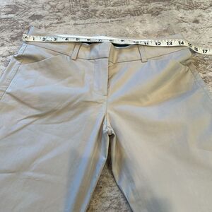 Experience the perfect blend of comfort and style with these Theory tan Chinos. Crafted from a soft cotton blend, these pants offer a relaxed fit with a polished appearance, making them ideal for both casual and semi-formal occasions. The neutral gray color ensures they pair effortlessly with a variety of tops, adding versatility to your wardrobe.