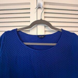 Theory women's Raffina HS Lofty cashmere sweater, size medium. Gorgeous blue color. Crewneck. Interesting cableknit design on front of torso. 100% cashmere. Gently worn, in excellent used condition. Hardly any signs of wear.