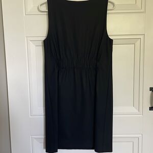 EUC- just dry cleaned & ready to go! It’s got 3 buttons at the neck, gathered elastic waist in the back and 2 front pockets. It is light weight fabric, unlined and seems stretchy. The fabric label has worn off.