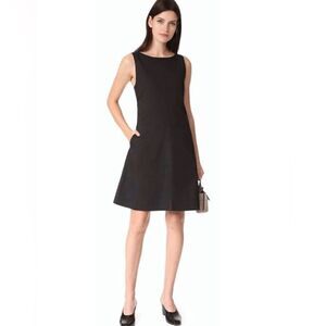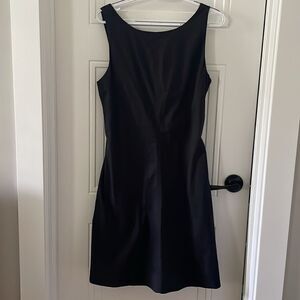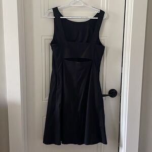Preowned in excellent condition, fit and flare style with hidden side zipper, side pockets and cut out back. It is not lined.
