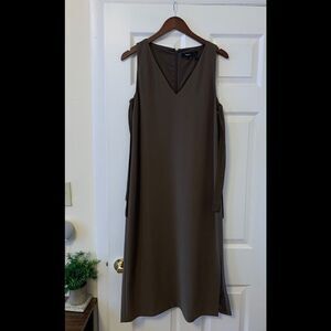 Fit: this style fits true to size. - V-neck - Sleeveless - Hidden back zip closure - Self-ties - Side slits - Woven construction