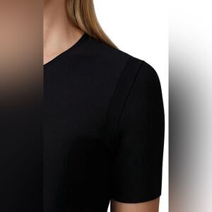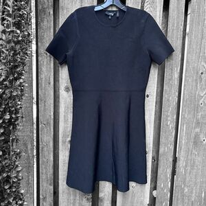 This Theory LBD is a feminine take on the classic shift silhouette with a V-neck and flared skirt.