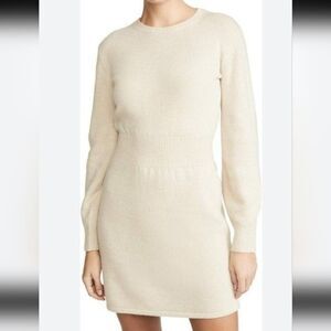 Theory Ivory Heather Rib Waist Wool Cashmere Long Sleeve Dress Large