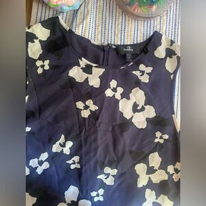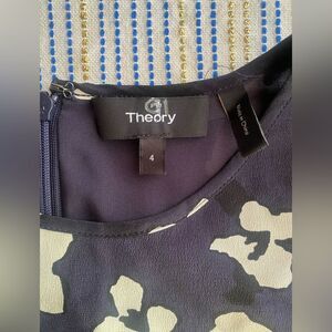 Theory Mini Dress Women Silk Navy Blue Floral Sleeveless Lightweight Lined Sz 4