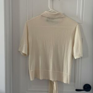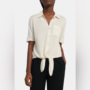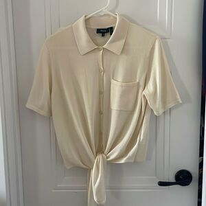 Like new, super soft, light weight, cream colored, button down feint with tie at the waist. No flaws