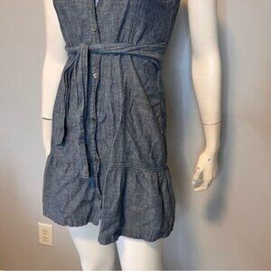 Theory Sleeveless Gray Chambray Button Down Ruffle Shirt Dress Size 4