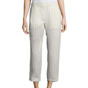 Thorina Narrow Striped Linen Pants, White