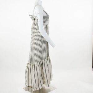 Cut in an airy midi-length from crisp cotton, this striped dress with a tie-back design and ruffle hemline is essential for your sunshine-ready wardrobe. Square neck Sleeveless.