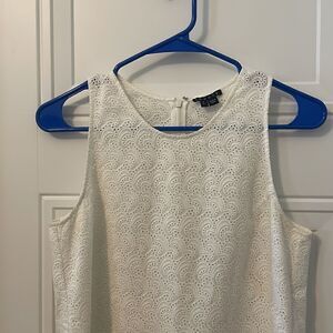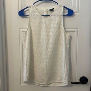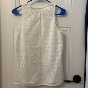 Beautiful preowned sleeveless top with swirl lace pattern. It is 100% cotton and has a hidden zipper in back.