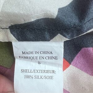 Theory Women’s Navy Blue 100% Silk Colorful Geometric Top Blouse Sz S