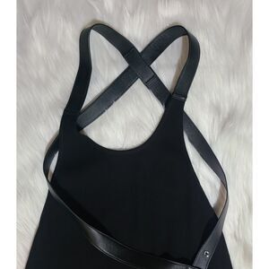 sexy, chic, stylish, minimalist, neutral, black top, leather strap, biker, rocker, goth, moto, biker, classy, trendy, trending, party, birthday, weekend, city, date night, travel, vacation, concert, work, fashion, luxury, sleeveless black top, summer, spring, petite