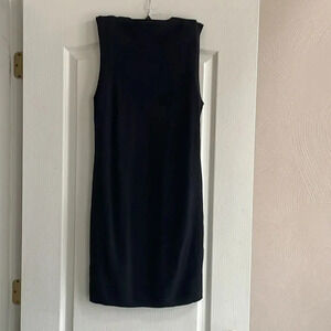 Theory black sleeveless shift dress wool & silk blend 100% silk top layer Size M
