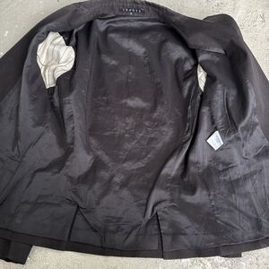 Check out the pictures. This is a nice cotton blazer, but it does have a little bit of fading around the edges. I show in the pictures. Measuring across the shoulders seem to seem is 15, pit pit is 17 from the shoulder seem to the bottom of the sleeve is 21 from the top of the collar to the bottom of the jacket is 24. Measurements are approximate shoulders are slightly padded.