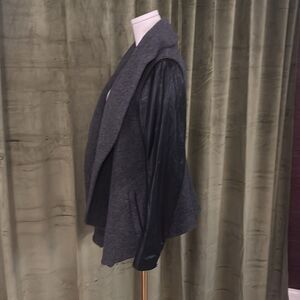 Theory gray/black wool/cashmere/ lamb leather open front jacket, M