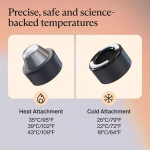 The TheraFace Hot and Cold Rings, which attach to your TheraFace PRO device, feature a combined 6 varying temperature settings to better help your skin absorb creams, help reduce facial puffiness, improve radiance, and much more.
