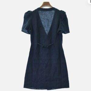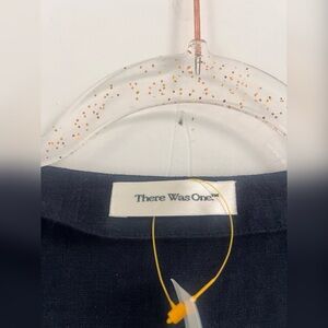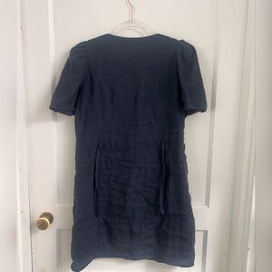 There Was One Dress Navy Linen Puffy Sleeve Button Down Dress Size M $258