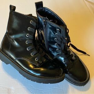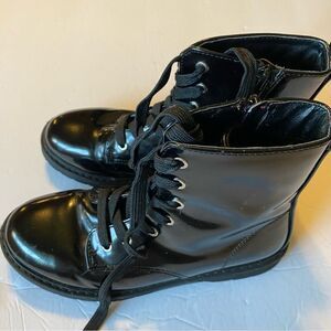 Thereabouts Girls Reese Combat Boots faux Leather glossy Lace Up zipper side 3