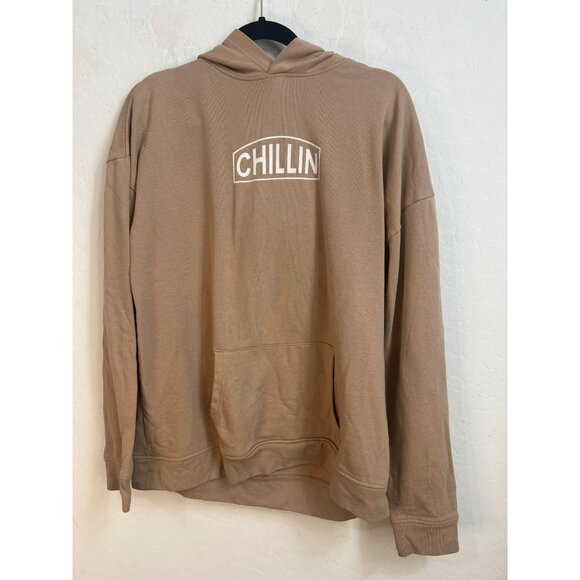 Thereabouts Vintage Look 90s Boys Graphic Hoodie Tan White "Chillin" Boys Sz XL
