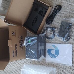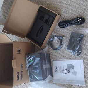 New in the box. Compact Thermal label printer. No ink or toner required. Supports Windows and Mac systems. Only opened to take pictures.