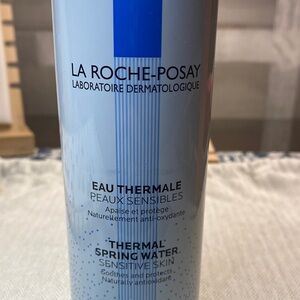 White and blue thermal spring water spray. Ideal for soothing sensitive skin.