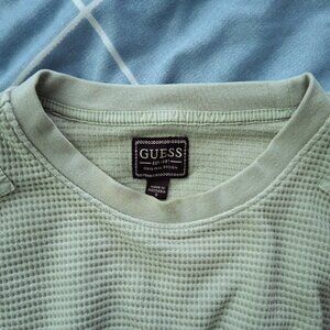 Green thermal long Sleeve Guess shirt. Slight discoloration around collar (see photos)