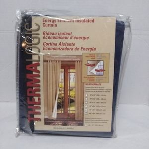 NIP Set of Navy Blue Energy Efficient Insulated Curtains. These will help you save on your energy bill by keeping warm air in during winter months and cool air in during summer months. These help keep sun out and keep the room darker. These give your eyes a rest by reducing reflections on computers and tv screens. They help protect your carpets, furniture and keep sakes from sun fading.