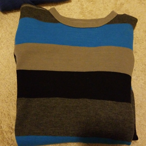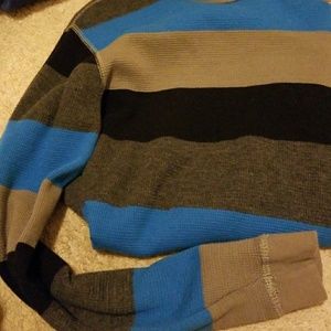 A small thermo with black grey blue strips. Hardly worn.