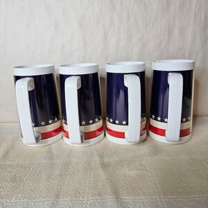 Thermo-Serv 70's Nautical Red White Blue Insulated Large Beer Mugs Set of 4