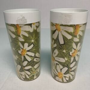 Thermo-Serv West Bend Vintage Floral Daisy Plastic Insulated Tumblers-Set of 2