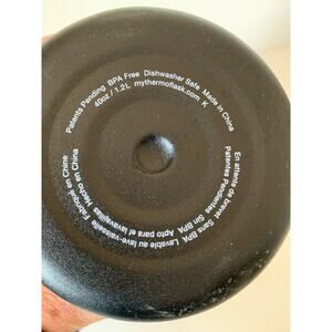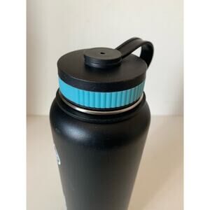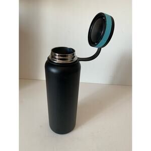 Thermoflask 40 oz. black blue attached lid 10.5 in tall, 3.5 in across base. great condition.