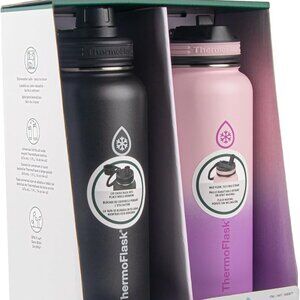 Thermoflask double wall vacuum insulated stainless steel water bottles, 2-Pack, Black / Rose Purple