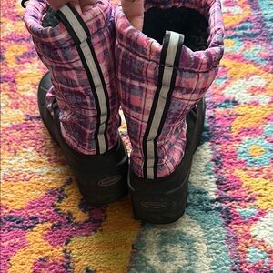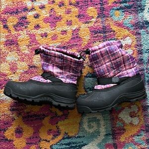 Stylish and warm preowned winter boots in great condition. Pink plaid design. Durable and comfortable. Perfect for cold weather.
