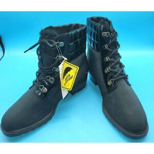 Thermolite Winter Ankle Boots BLACK Women's 10M Lace-up Faux Fur Tongue