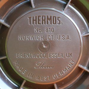 This lovely thermos was made by "Thermos" in the "No.810" pattern. Produced in West Germany through the 1980s. Made from plastic and in like new condition. No cracking, and no discoloration. Measuring 10in. tall and 5 3/4in. wide at the base.