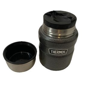 Thermos Stainless Steel 16oz Vacuum Insulated Food Soup Jar Gray NO Spoon. Good condition, minor dents.