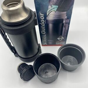 Thermos Vacuum Bottle Add A Cup Stainless Carry Handle Cup Screw Top Black 2816